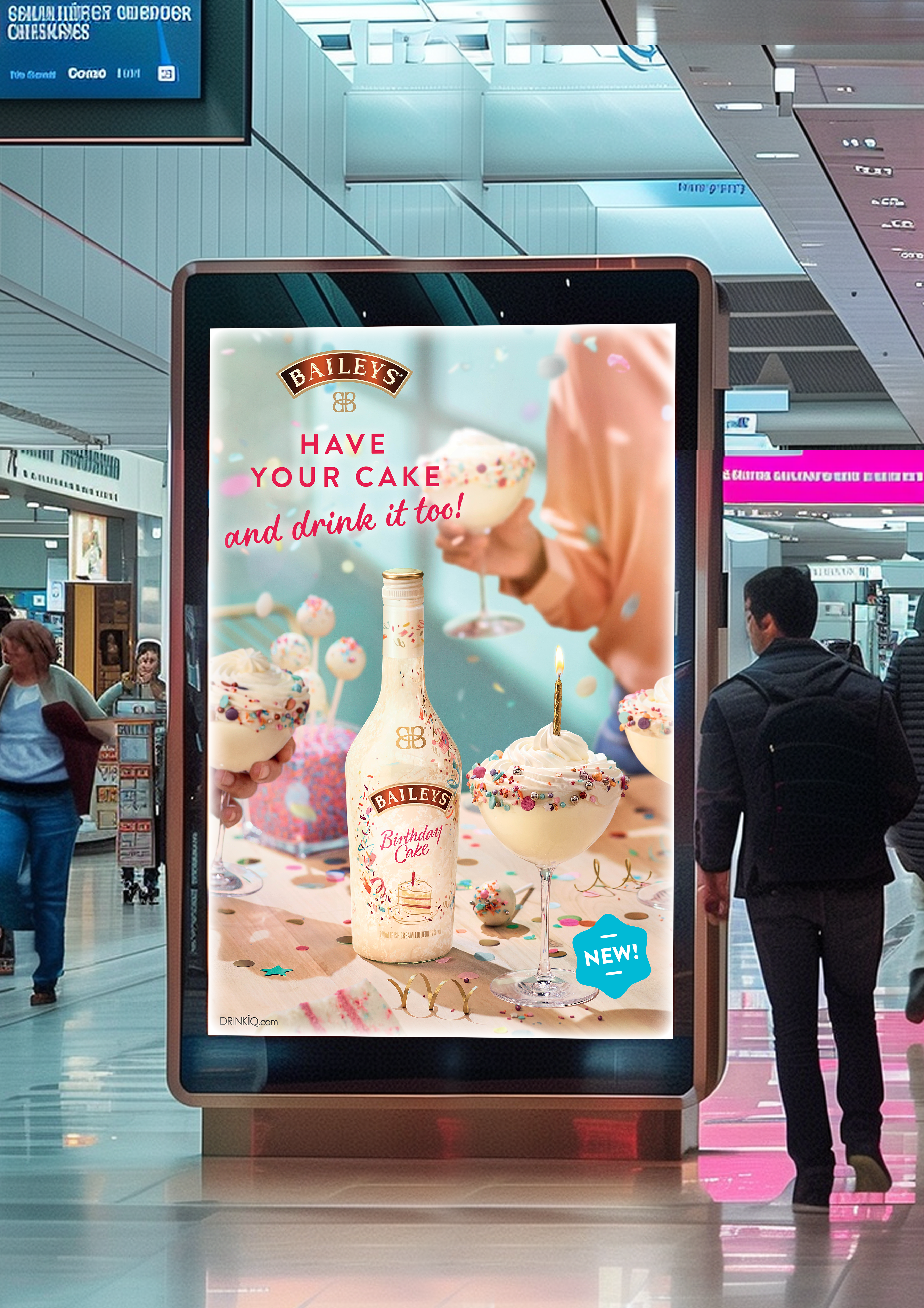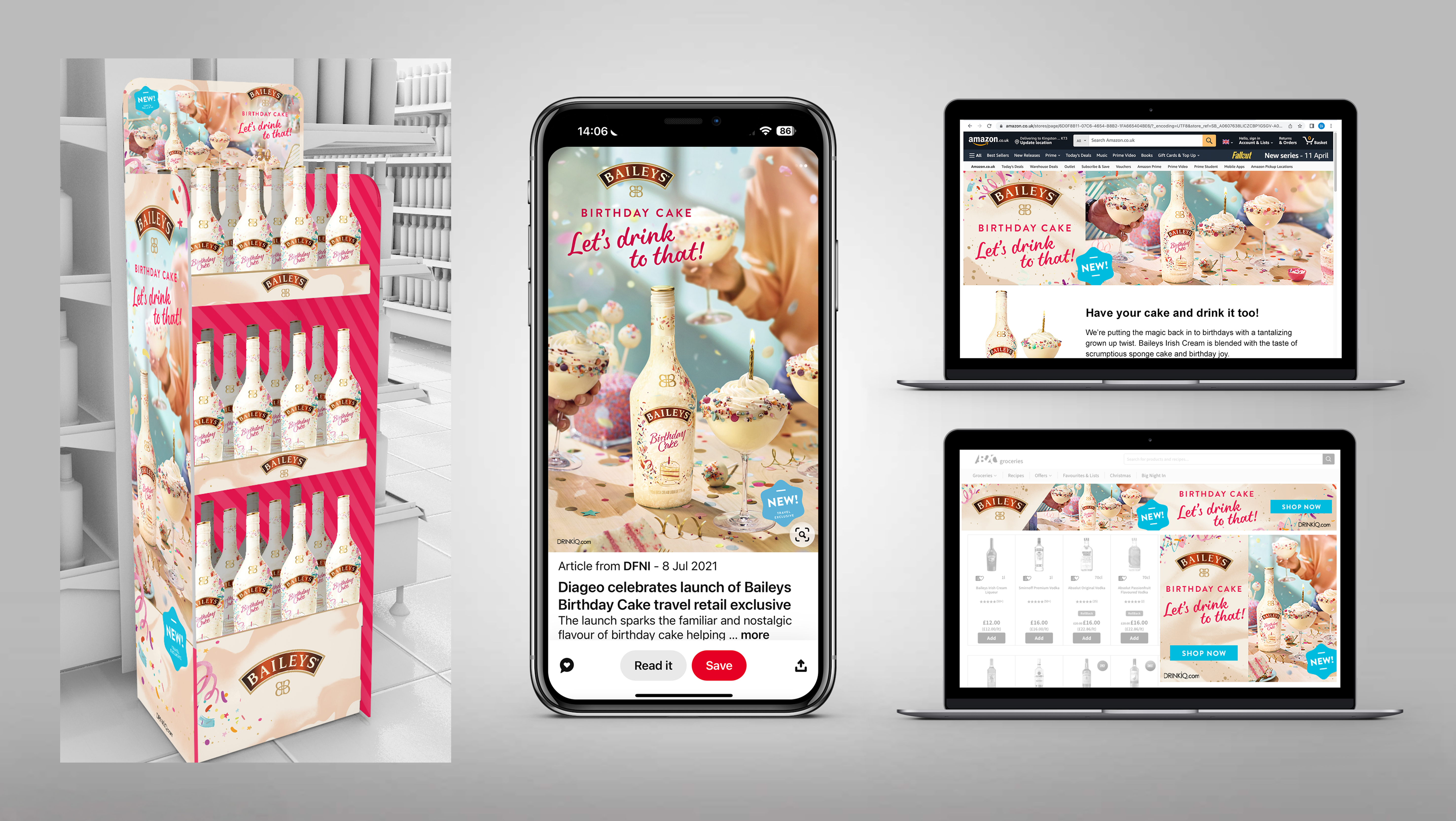 ‘Baileys Birthday Cake, Let’s drink to that!’ and ‘Baileys, Have your cake & drink it too!’ – capturing Baileys part cake, part booze, pure pleasure brand essence.