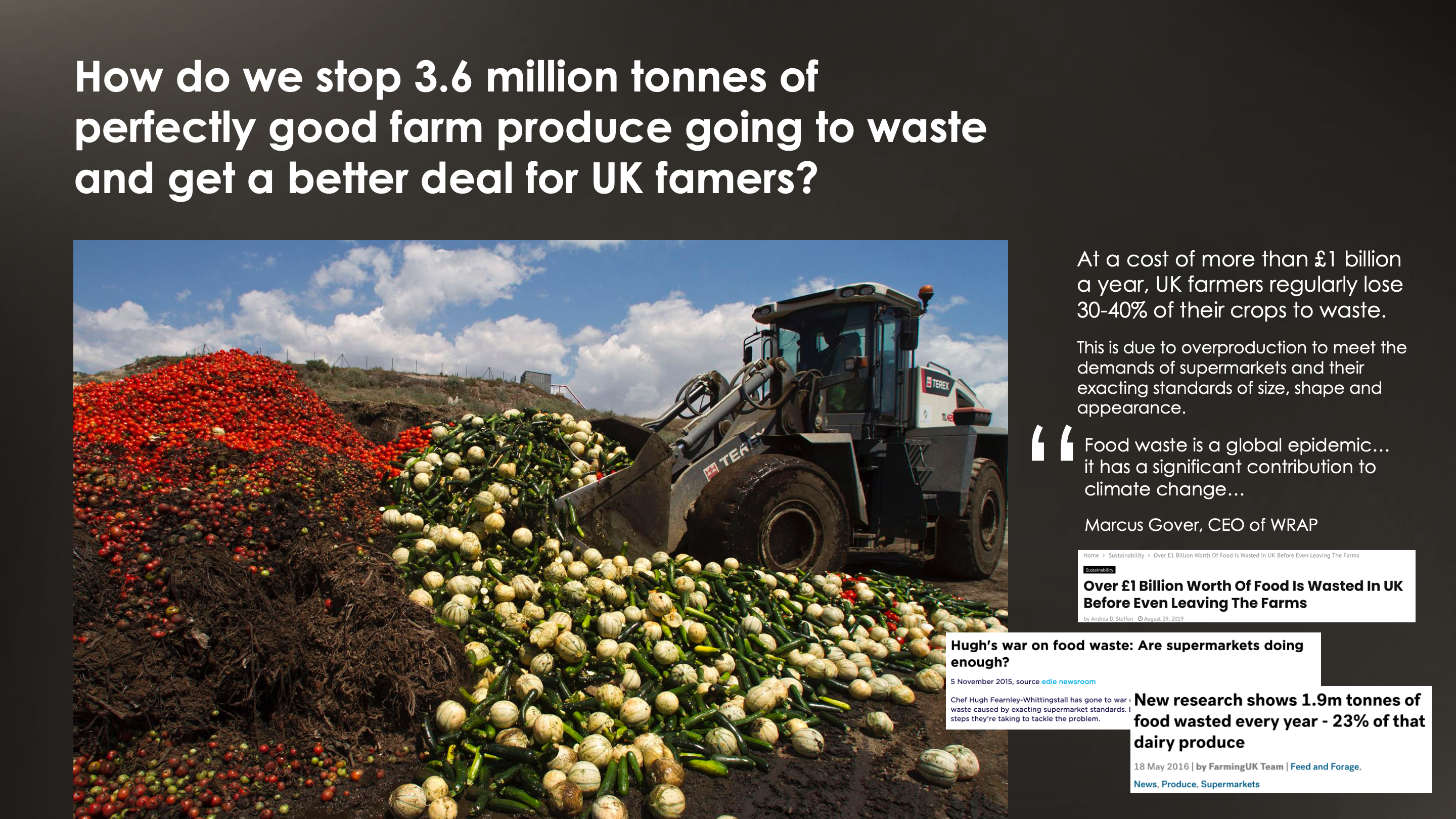 Estimates predict that 3.6 million tonnes, or 7.2% of all food harvested, is wasted before it leaves UK farms every year. If this wasted food had been sold at market value, it would have fetched £1.2 billion (WRAP, 2019).