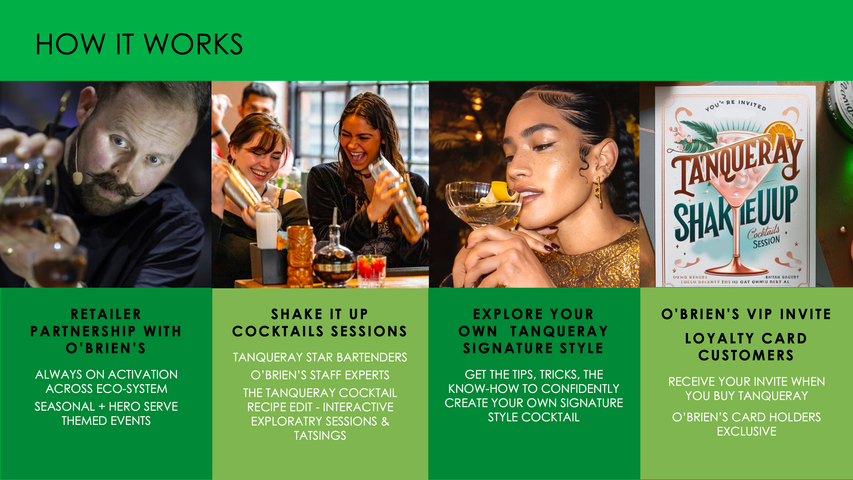 Leveraging established Tanqueray partnerships with Stanley Tucci – global ambassador, Tanqueray Star Bartenders – new Diageo Ireland Cocktail Bartender of the year and key Irish influencers.