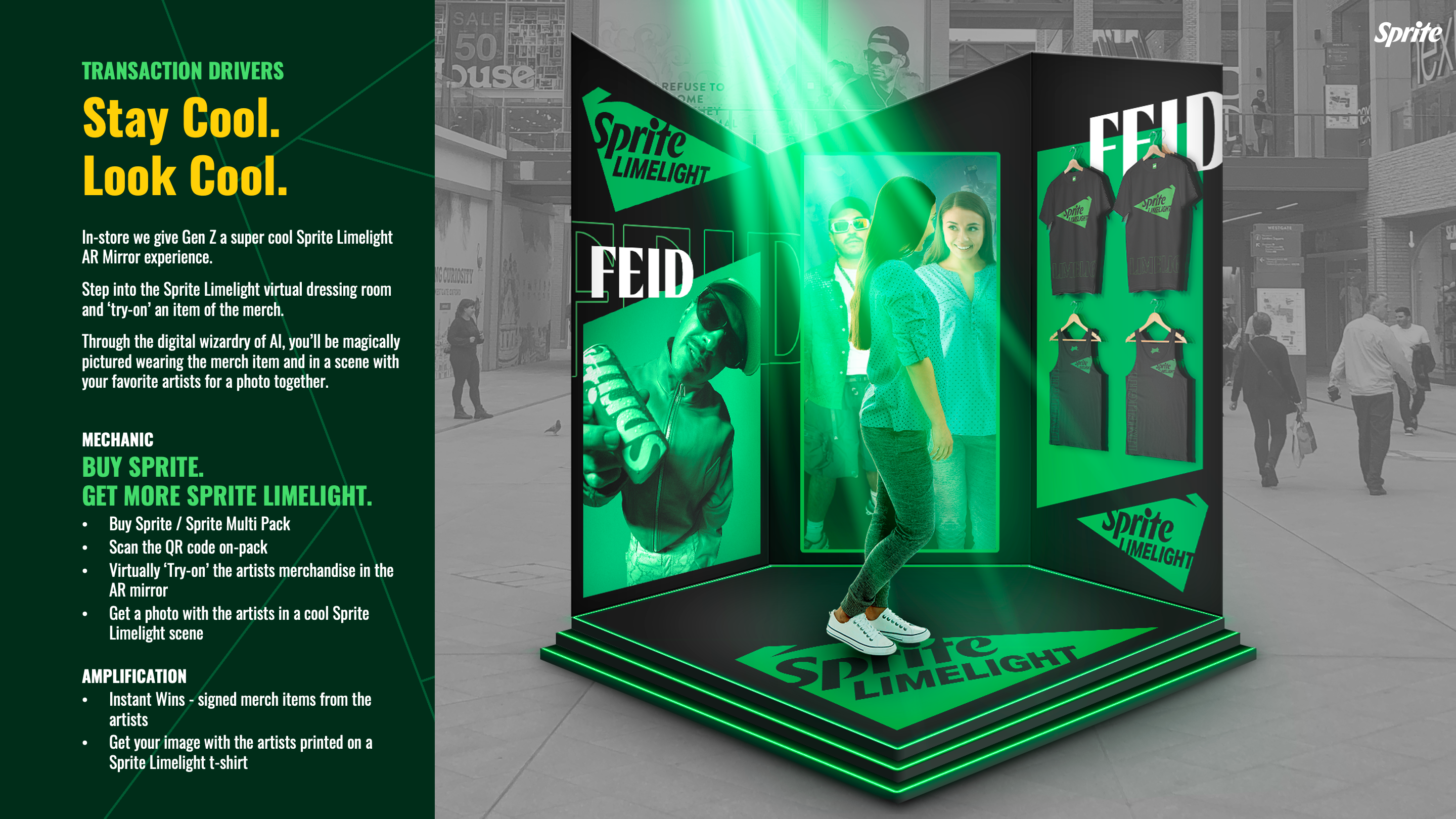 The brief was to create disruptive experiences that capture the attention and enthusiasm of Gen-Z shoppers, that drive engagement and transaction within the Sprite Limelight programme with every purchase.